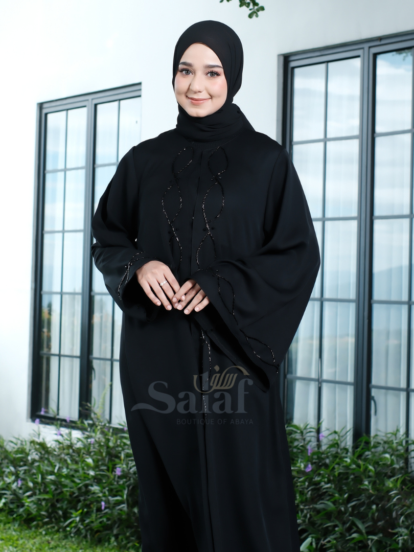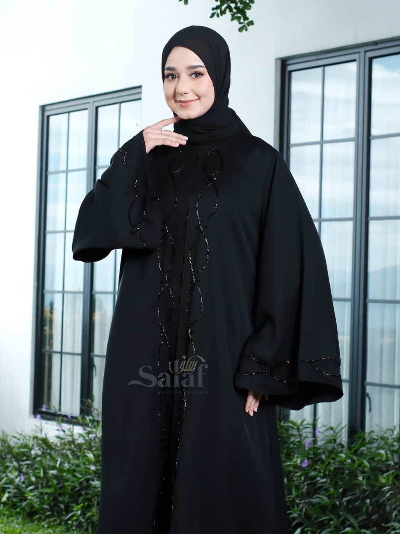 Gamis abaya hitam mewah elegan terbaru 2025 Fursan Bulat