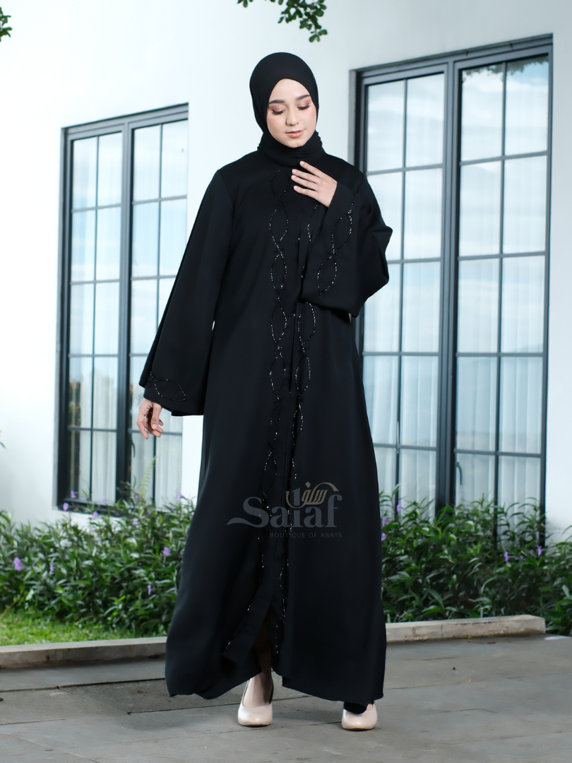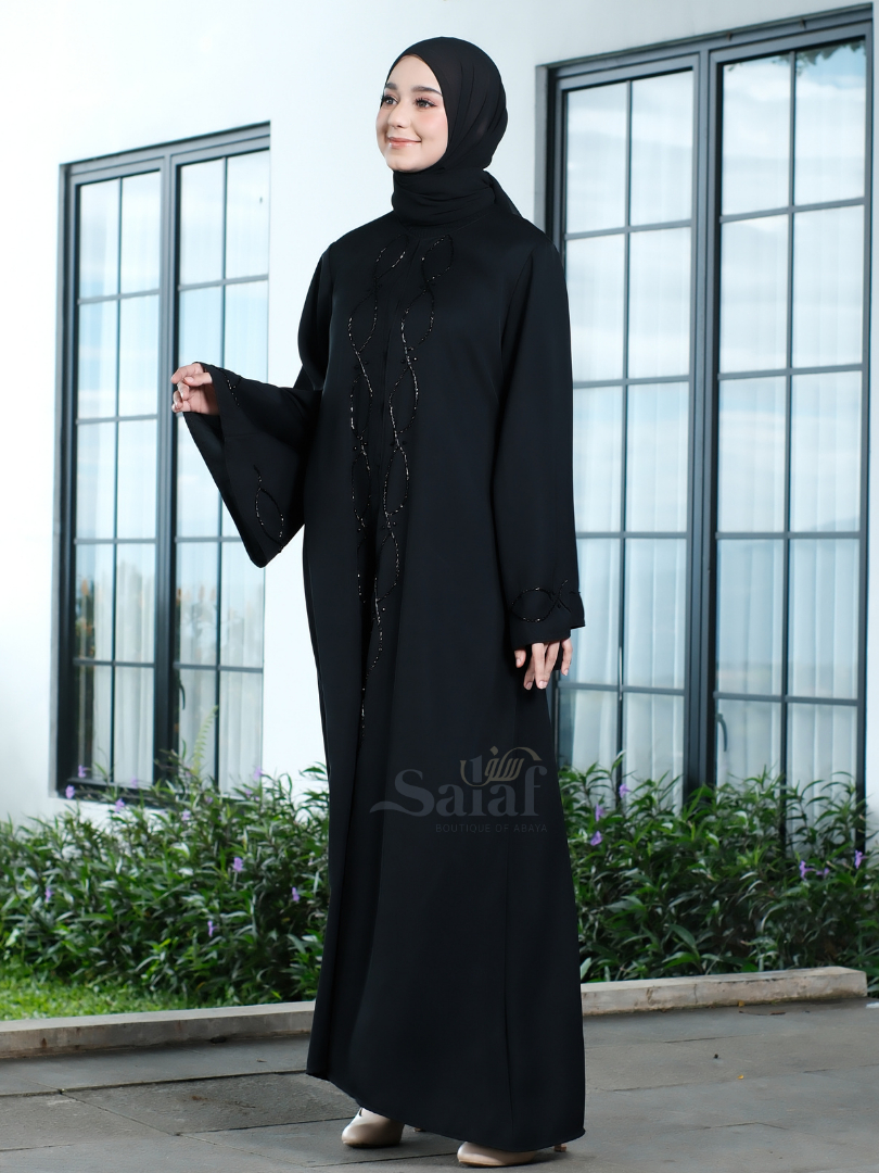 Gamis abaya hitam mewah elegan terbaru 2025 lebaran wanita premium